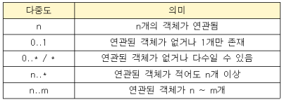 - 다중도(연관에 참여하는 객체의 개수)를 선위에 표기