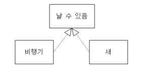 - 사물이 할 수 있거나 해야 하는 기능(행위, 인터페이스)으로 서로를 그룹화할 수 있는 관계를 표현